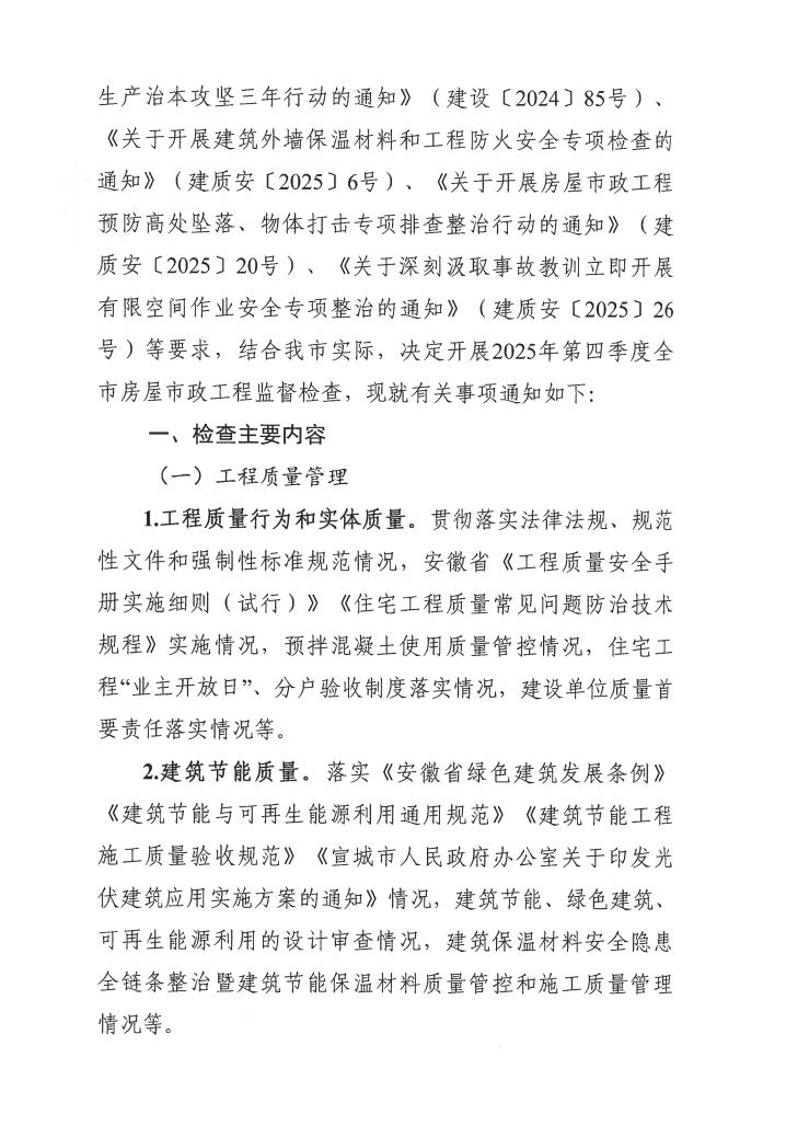 广德市住房和城乡建设局关于开展 2025 年第四季度全市建设监督检查的通知
