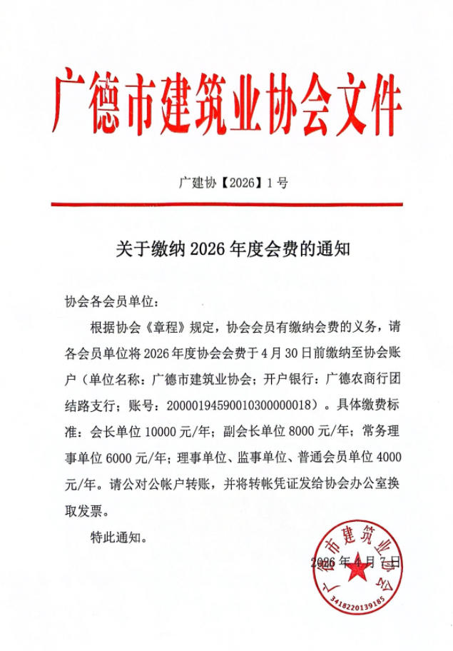 关于缴纳2026年度会费的通知
